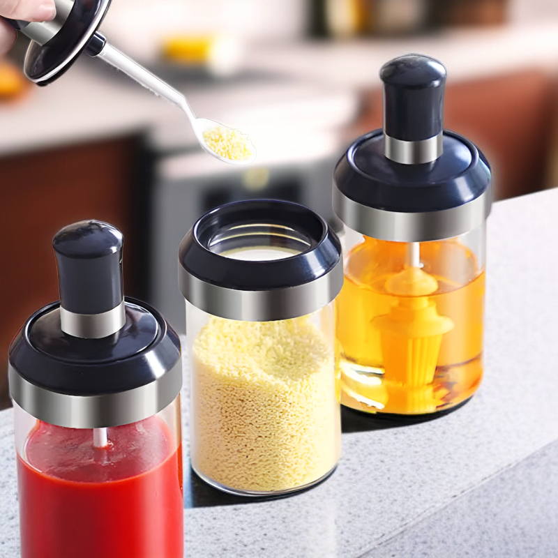 ขวดเครื่องปรุงแก้วพร้อมฝาช้อนในตัว สำหรับห้องครัว