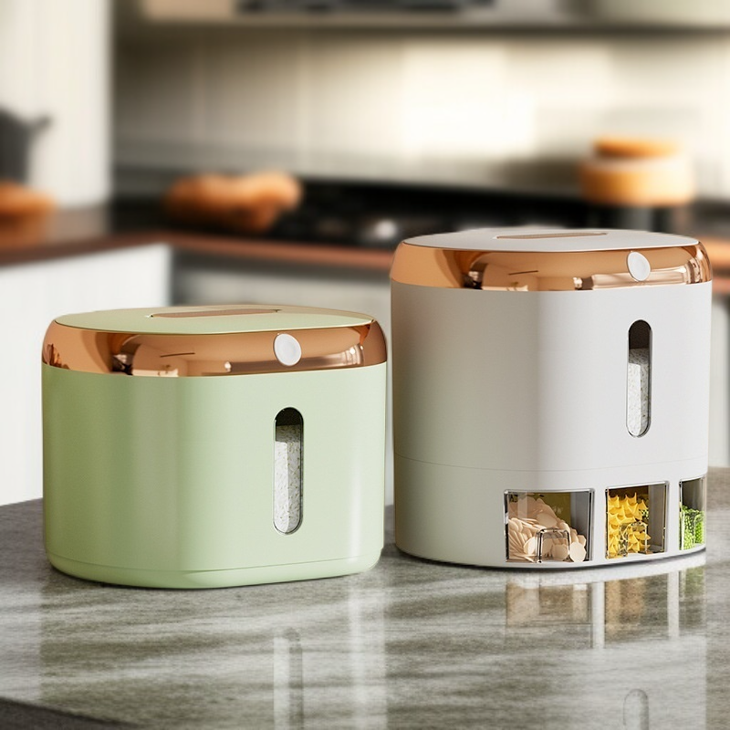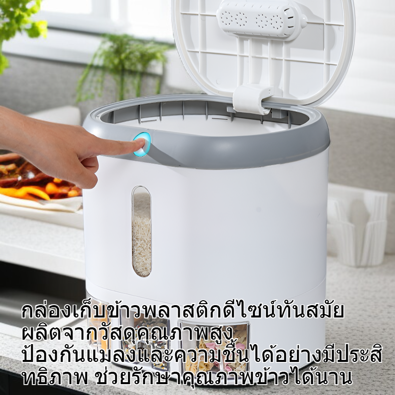 ● กล่องเก็บข้าวพลาสติกดีไซน์ทันสมัย ผลิตจากวัสดุคุณภาพสูง ป้องกันแมลงและความชื้นได้อย่างมีประสิทธิภาพ ช่วยรักษาคุณภาพข้าวได้นาน